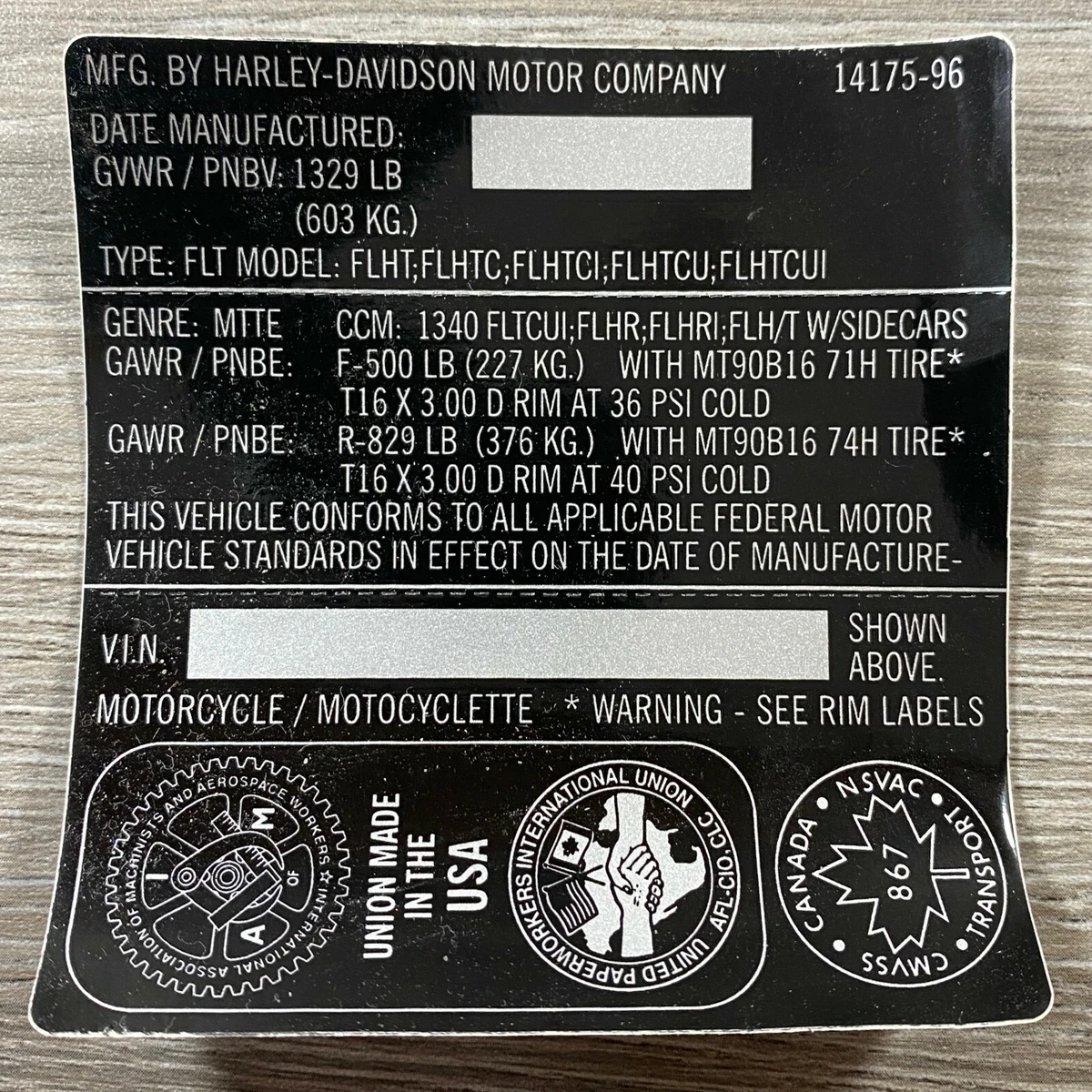 NOS Frame Tag Label Decal Sticker Harley VIN # Restoration Part